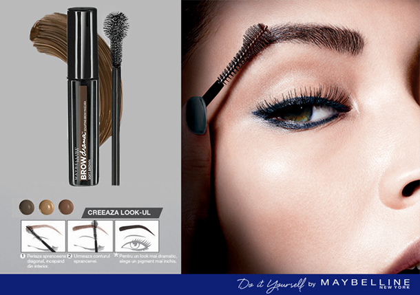 Căutam de ceva vreme un produs care să-mi potolească sprâncenele dese şi să le ţină “la linie”, aşadar am cumpărat BrowDrama (aprox. 25 lei), un produs ce seamănă cu o mascara pentru sprâncene – peria depozitează cantitatea ideală de produs, astfel încât make-up intervenţia să fie invizibilă, însă sprâncenele să devină pline şi fără accese rebele.